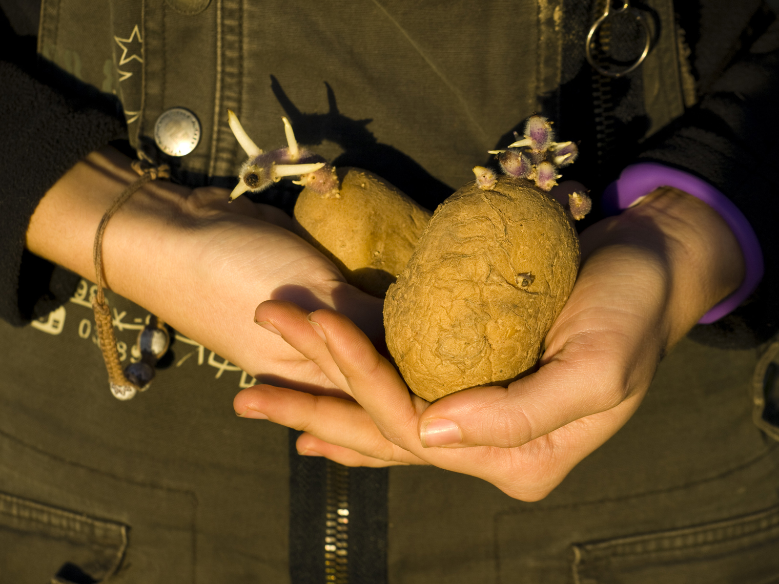 A primeira batata, herdada da avó, possuí um sabor que se assemelha ao do morango.